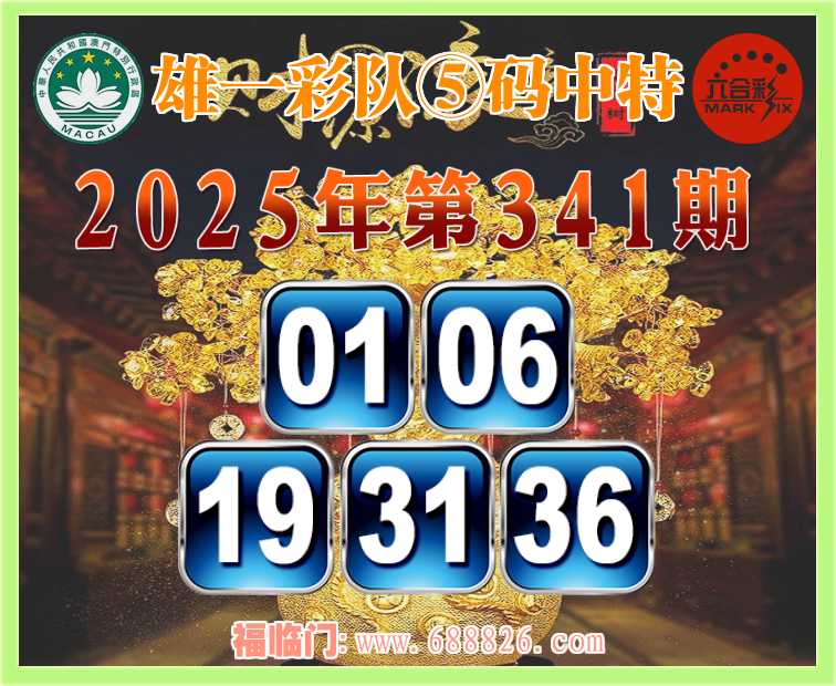 341期: ⌚『雄一彩队』⑤码中特⌚【01.06.19.31.36】开:00准